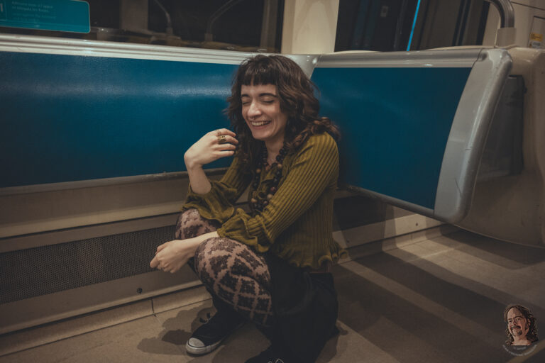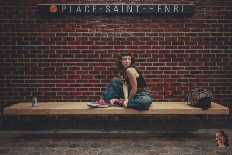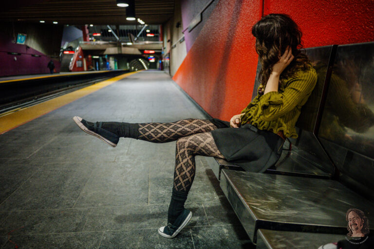 Entre la brique, le béton et la lumière du métro, une présence calme traverse la ville comme un théâtre discret. La nuit s’installe doucement, encore ouverte, encore mobile, juste avant que tout devienne plus intense.