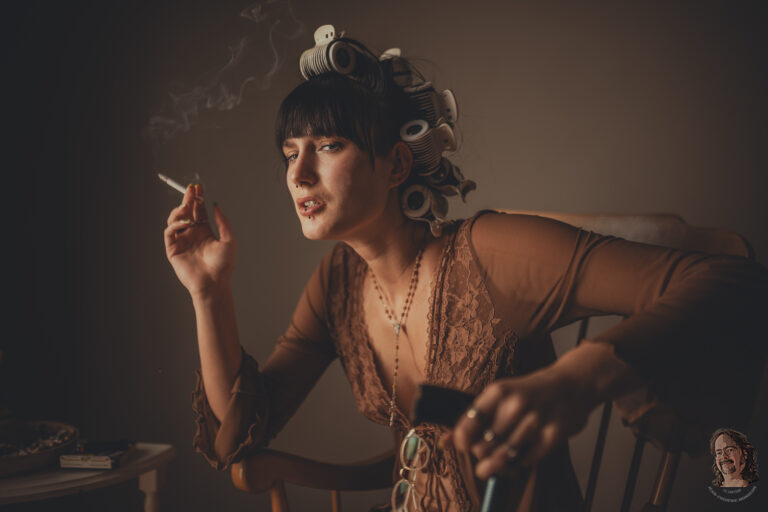 Entre le miroir, le velours et la lumière basse, elle glisse d’une douceur presque sage vers une présence plus souveraine. Une série intime, rétro et troublante, où le geste devient confidence.