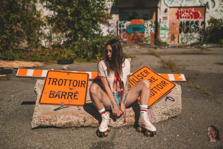 Elle traverse les murs, la rouille et la lumière comme une figure venue d’un autre lieu. Une présence trouble, sombre et magnétique, entre décor abandonné et rituel intime.