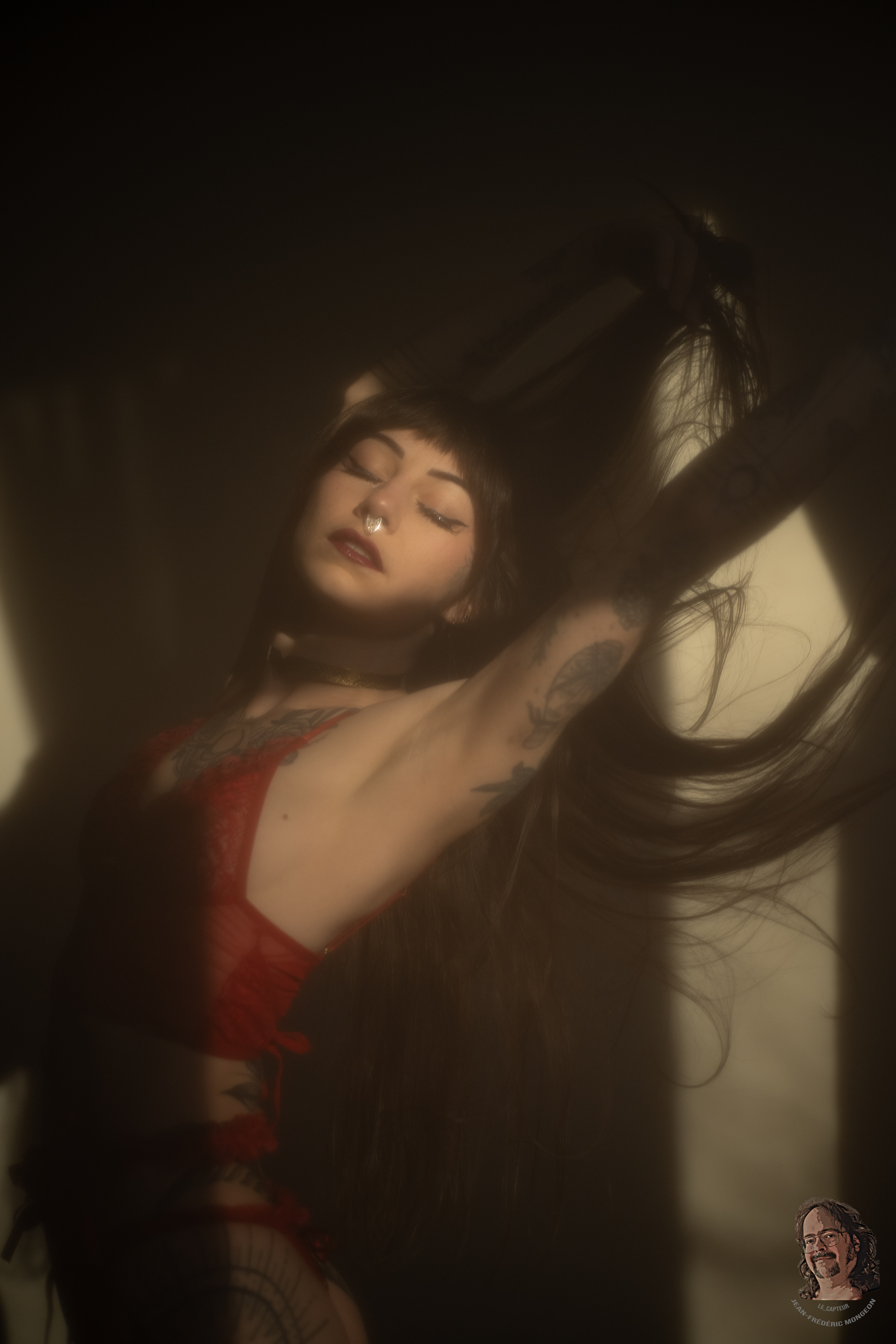 La lumière découpe le corps comme une confession.